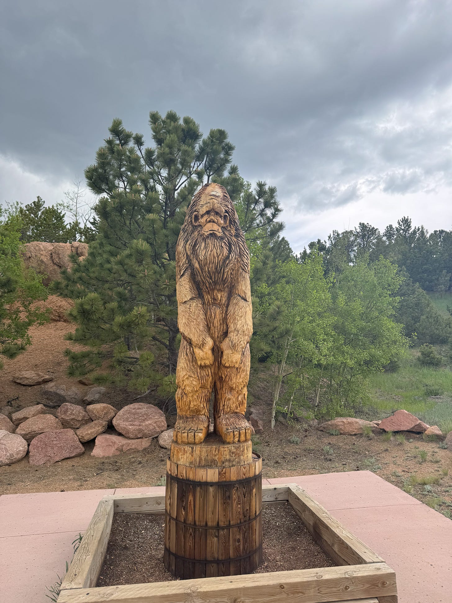 I took the 10th of June to rest and acclimate, but on the 11th, I wanted to get beyond my urban environment and connect with the land, specifically Tava. I could no longer resist its pull anyway. I’ve always considered Tava and its inhabitants to be the embodiment of strength, so I decided to head straight for the summit in my jeep (Pancho). What I love about visiting Tava is that I never know what other mountain presences will make themselves known. It could be a black bear, a bobcat, a mountain sheep, or a really old pine. This time, Sasquatch was my primary muse. Yes Sasquatch! What’s a mountain without its mythological stories, right? And I can think of no stronger mountain dweller than a 15-feet-tall ape-like creature. Images and totems of Sasquatch are all over the place.